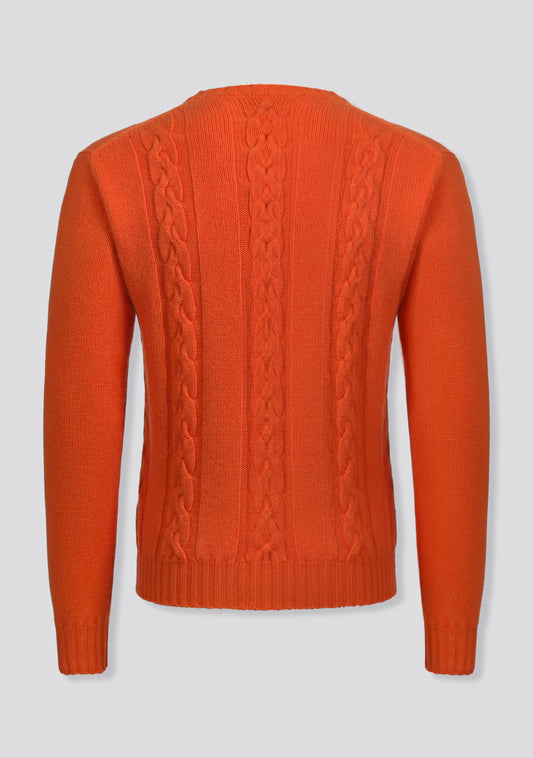 Orange Crew-neck Sweater in Cashmere and Lana Wool