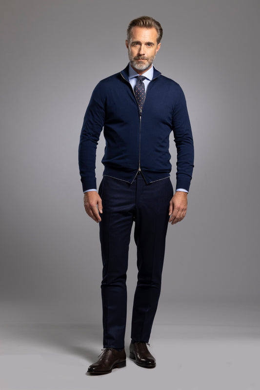 Navy Blue Blended Cashmere Zip Pullover