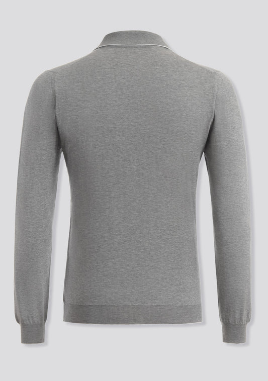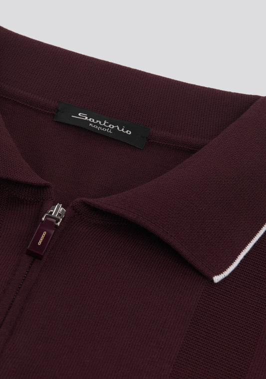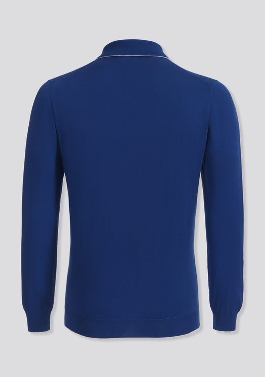 Marine Blue Patterned Knit Short Sleeve Cotton Polo Shirt