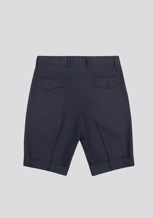 Navy Blue Virgin Wool Shorts With Side Adjusters